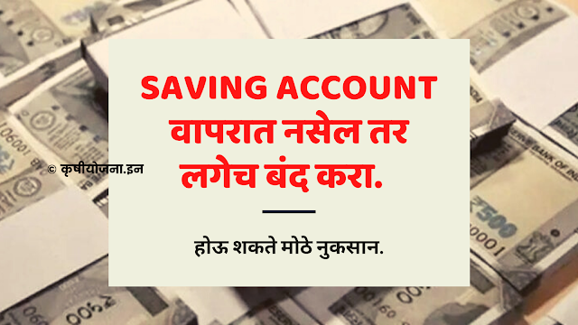 नमस्कार मित्रांनो, खुपश्या लोकांचे वेग-वेगळ्या बँकेच्या शाखेत Saving Accounts असतात, आपण अकाऊंट तर काढून ठेवतो पण त्याचा वापर कधी करत नाही. तुमचे सुद्धा कुठल्या बँकेत सेविंग अकाऊंट असेल आणि तुम्ही ते वापरत नसाल तर कृपया बँकेच्या शाखेत जाऊन ते त्वरित बंद करा नाही तर तुमचे खूप मोठे नुकसान होऊ शकते.