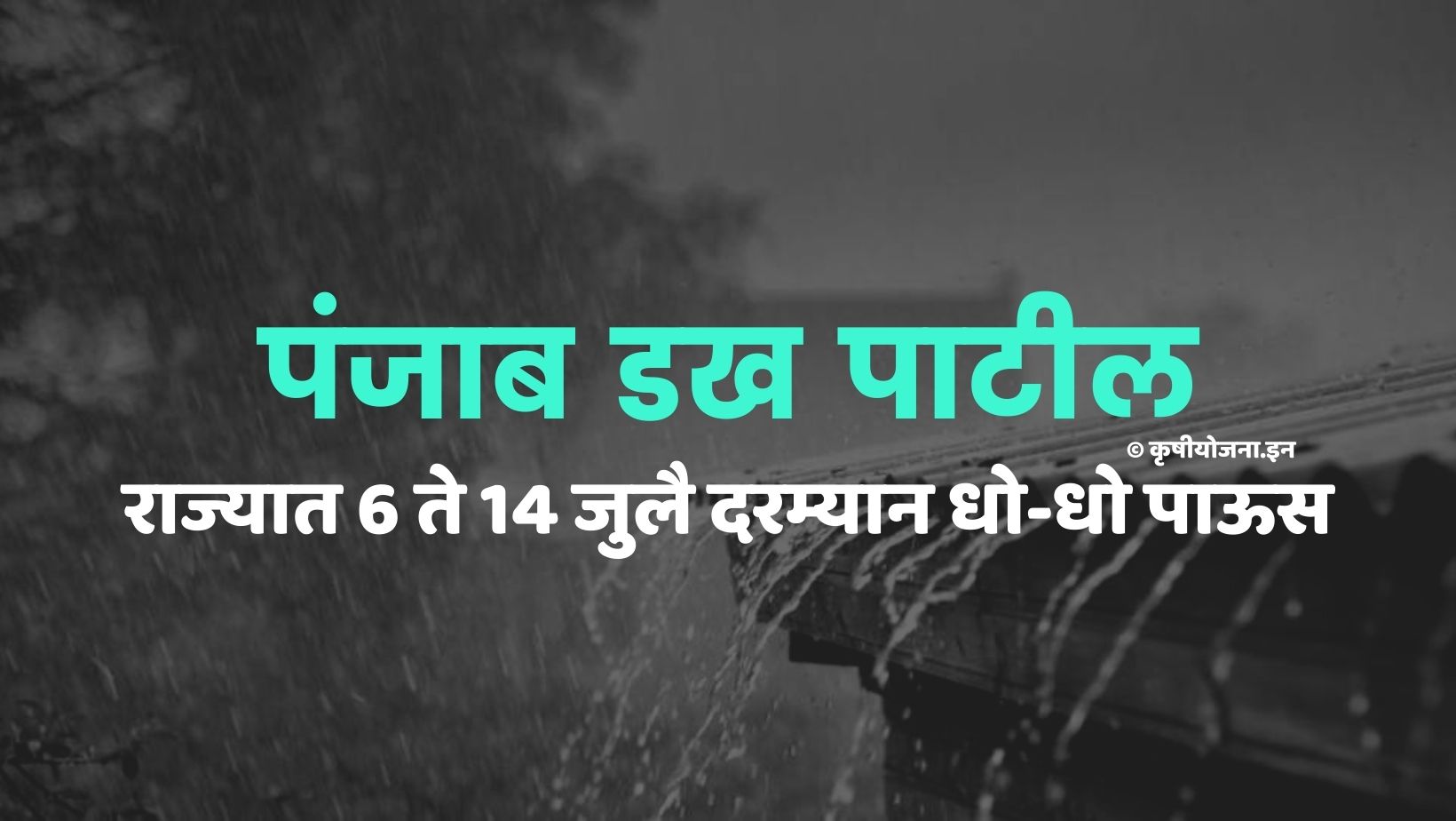 राज्यात 6 जुलै पासून सर्वदूर पाउस कुठे मुसळधार तर कुठे वाहूनी तर कुठे अतिवृष्टी तर कुठे ढगफुटी तर कुठे रिमझिम पाउस या नउ दिवसामध्ये दररोज भाग बदलत पडणार आहे . या पावसावर राहीलेली पेरणी होउल शेतकऱ्यांनी सर्तक रहावे व स्वतःची पाळीव प्राण्याची काळजी घ्यावी . –पंजाब डख पाटील (Punjab Dakh Patil)