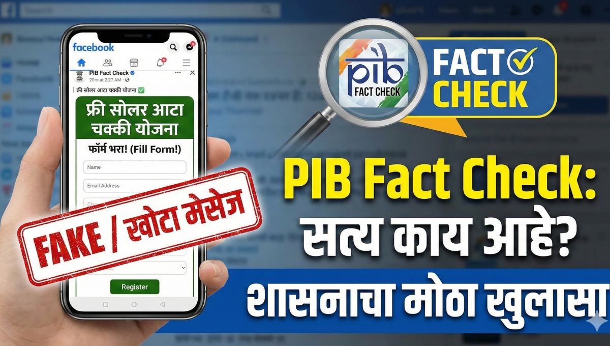 जेव्हा आम्ही या योजनेबद्दल सविस्तर रिसर्च केला आणि सरकारी वेबसाइट्स तपासल्या, तेव्हा एक वेगळीच माहिती समोर आली. भारत सरकारच्या PIB (Press Information Bureau) फॅक्ट चेक टीमने स्पष्ट केले आहे की, केंद्र सरकारकडून अशी कोणतीही ‘फ्री सोलर आटा चक्की योजना’ चालवली जात नाही. सोशल मीडियावरील ते सर्व व्हिडिओ आणि मेसेजेस पूर्णपणे खोटे (Fake) आहेत. महिलांची दिशाभूल करण्यासाठी आणि त्यांच्याकडून कागदपत्रे गोळा करण्यासाठी काही सायबर भामटे अशा खोट्या योजनांच्या लिंक्स व्हायरल करत आहेत. त्यामुळे अशा कोणत्याही खोट्या लिंकवर क्लिक करू नका किंवा तुमचे आधार कार्ड, बँक डिटेल्स कोणालाही शेअर करू नका.