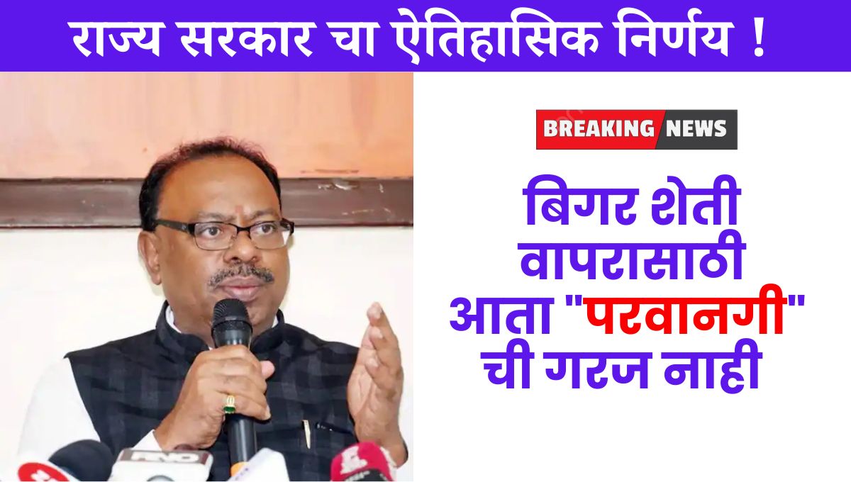 - अकृषक कर (NA Tax) इतिहास जमा: दरवर्षी भरावा लागणारा अकृषक कर आता पूर्णपणे रद्द करण्यात आला आहे.